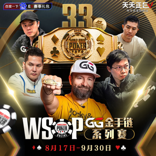 WSOP 线上金手链系列赛 8 月 17 日燃情开战,33 条金手链蓄势待发。国人闯入任一决赛桌,更可获赠“纪念戒指”,荣耀加倍!