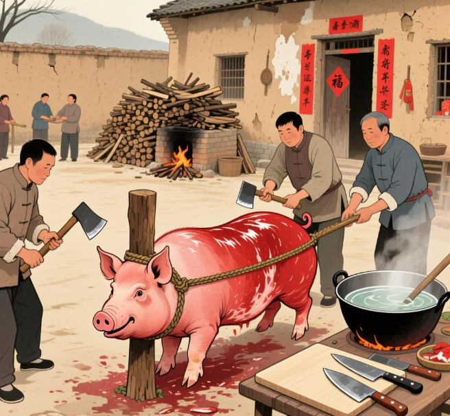 杀年猪也藏着乡村的习俗与温情,部分地区讲究选吉日,杀猪前敬拜祖先或灶神,寓意来年顺遂无忧。屠宰后邀请邻里亲友共吃杀猪菜,分享丰收的喜悦,传递互助友爱的乡土情谊。同时,我们也要兼顾动物福利,尽量缩短猪的痛苦时间,让这份传统劳作既有人情味,也不失人道关怀。